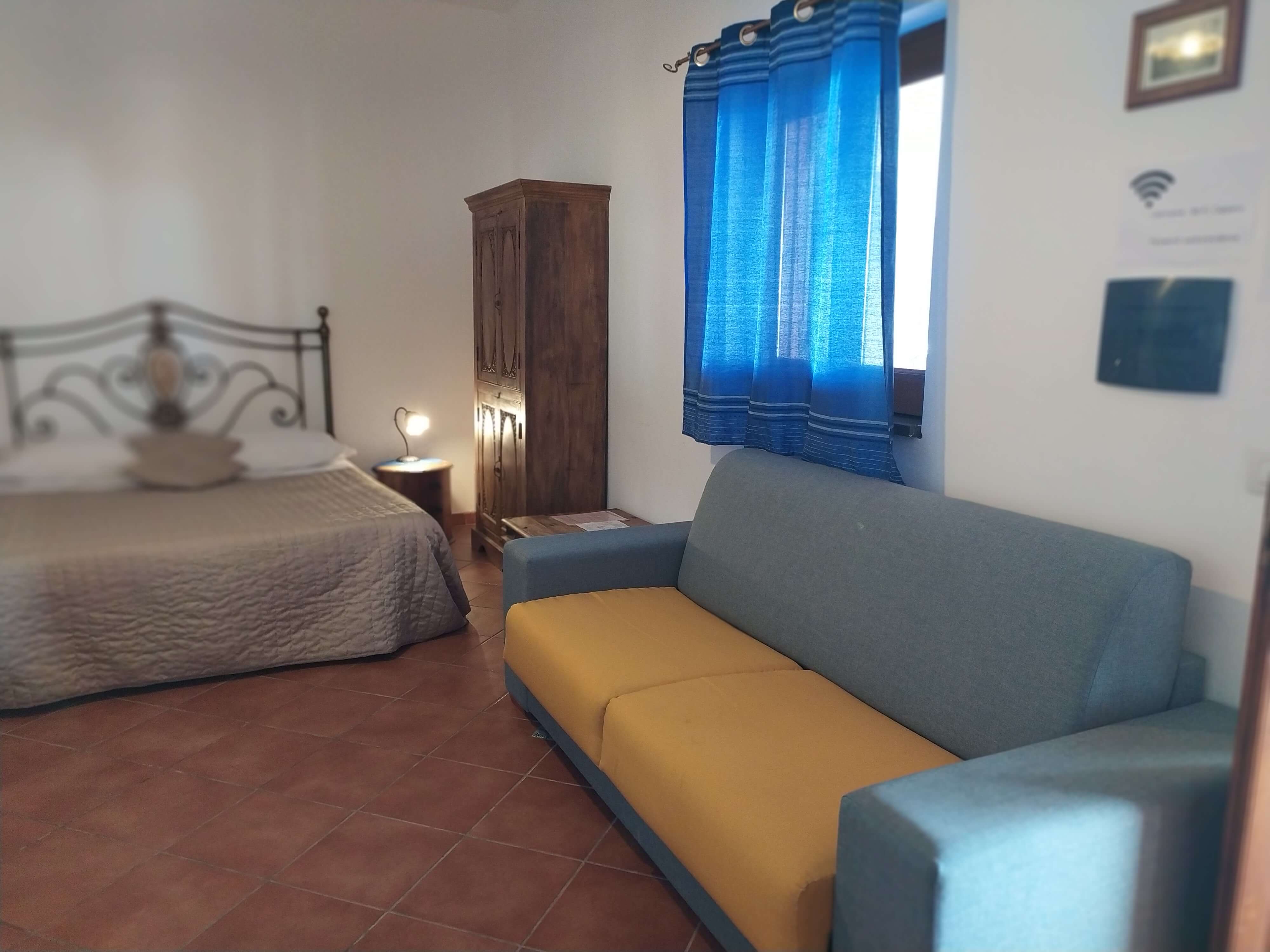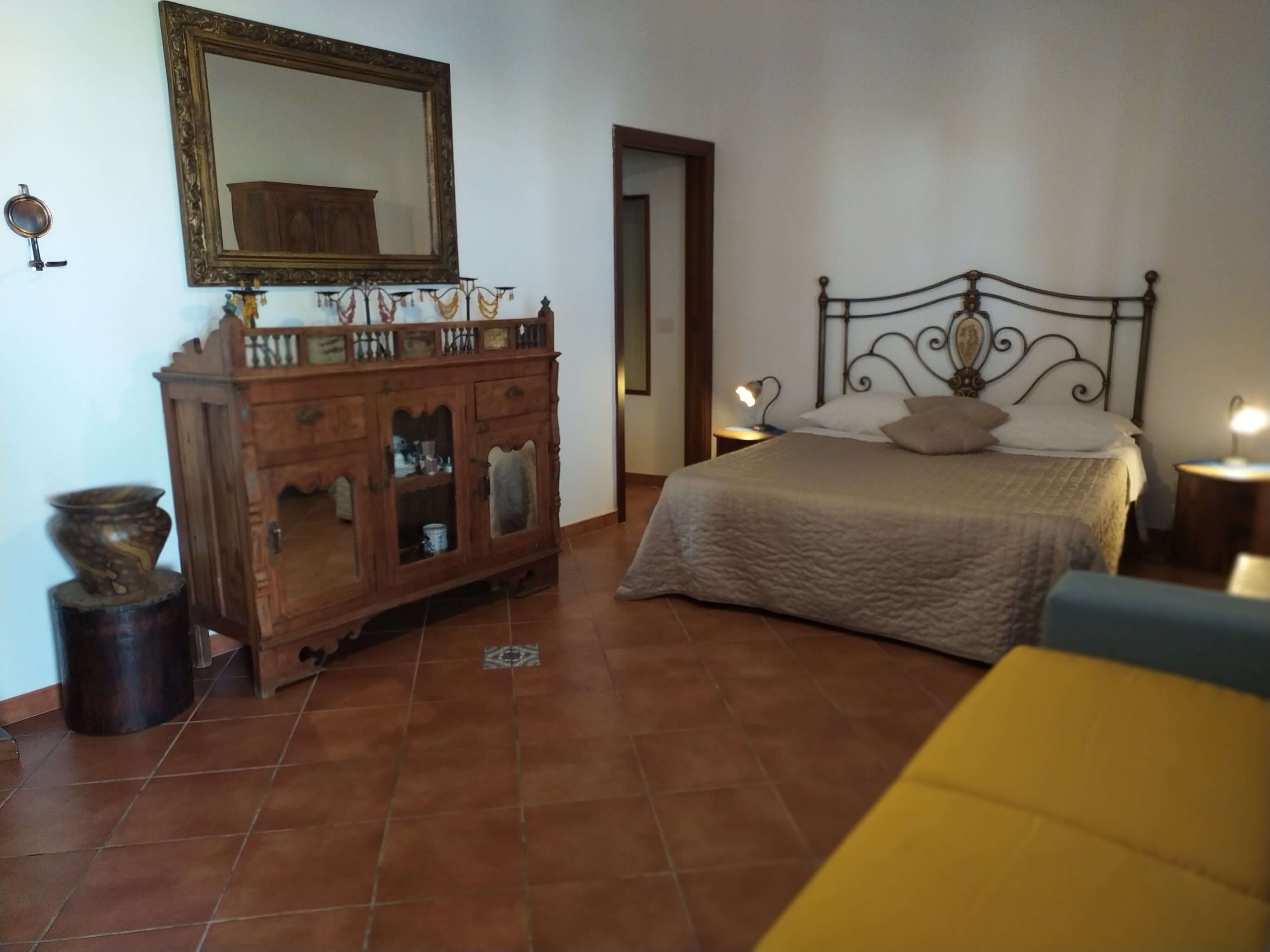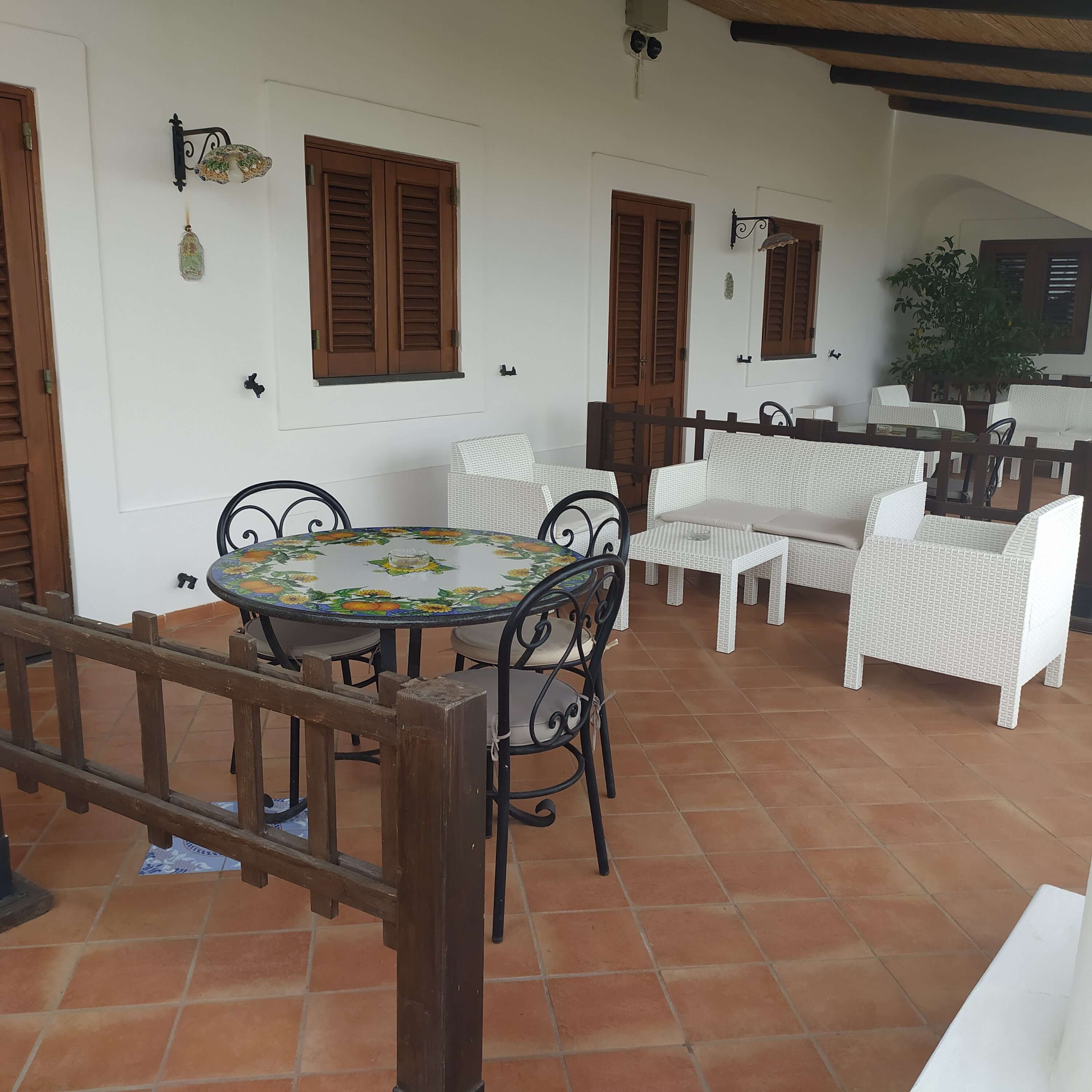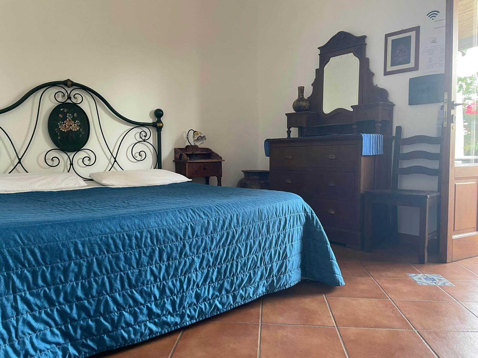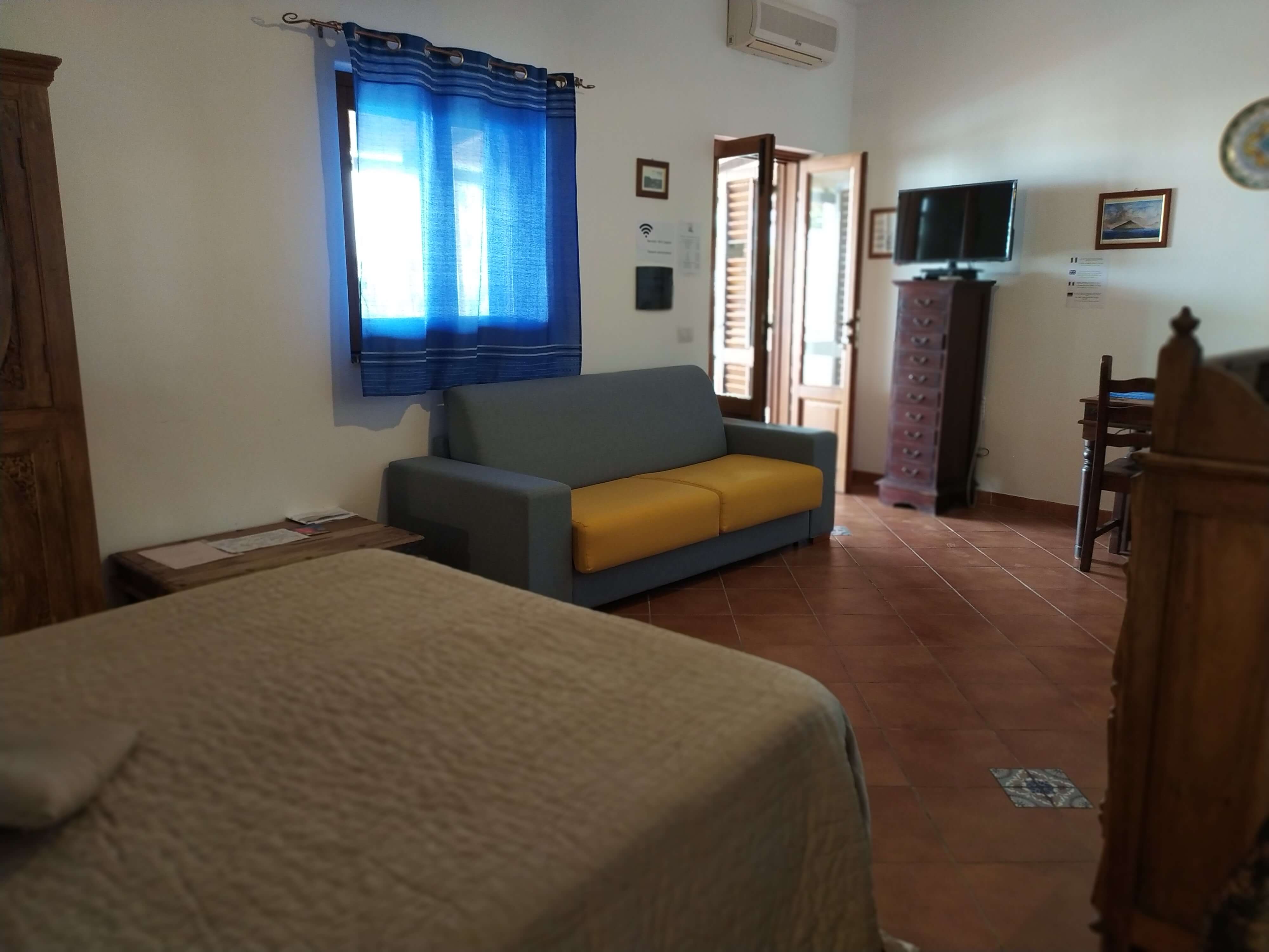 Gli arredi hanno tutti un sapore mediterraneo, anche grazie ai pavimenti in cotto e ai letti in ferro battuto, che tanto fanno pensare alla Stromboli di una volta, quando ancora non c'era la corrente elettrica.