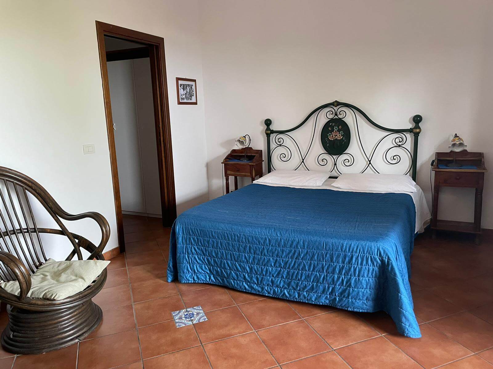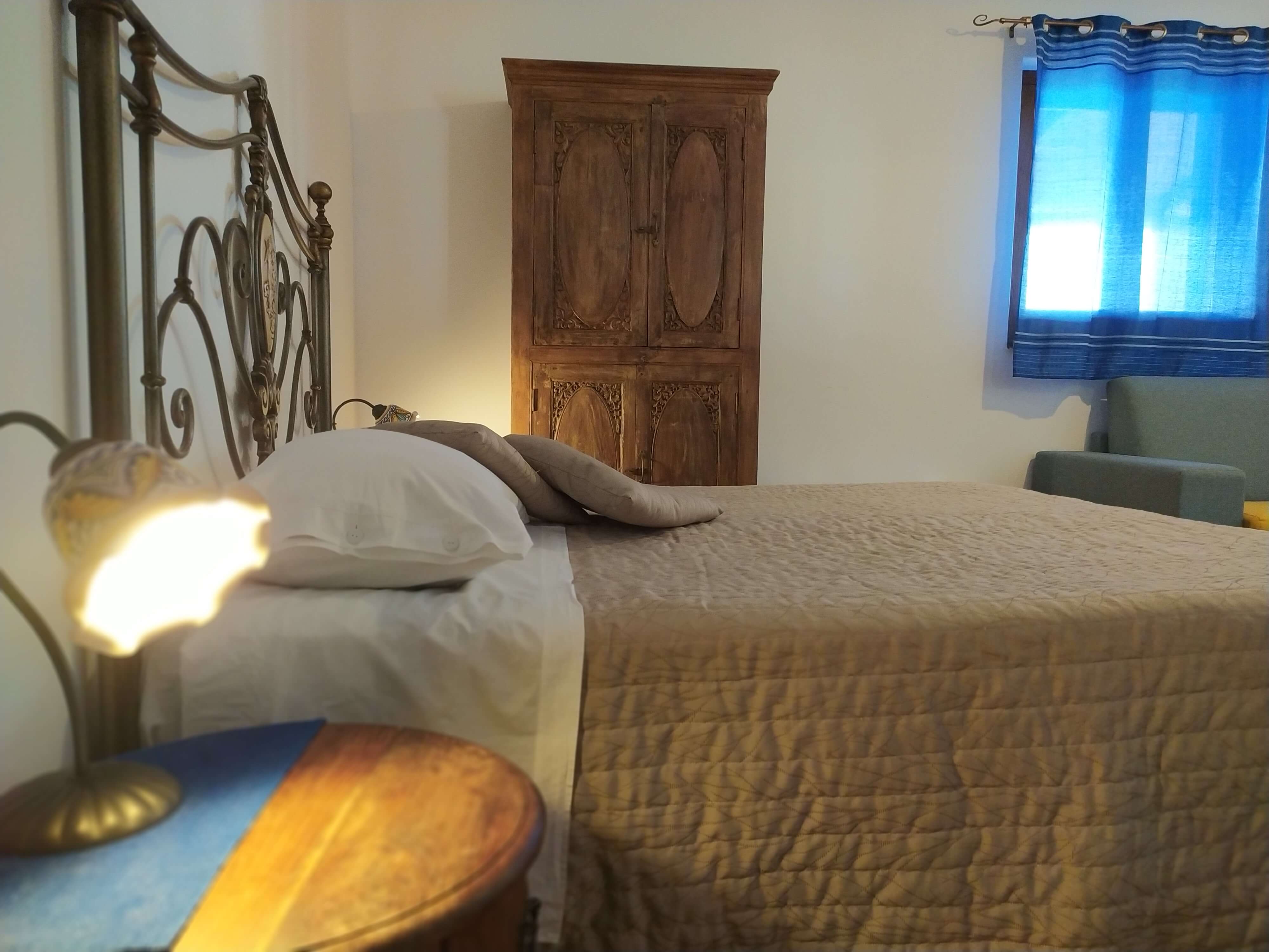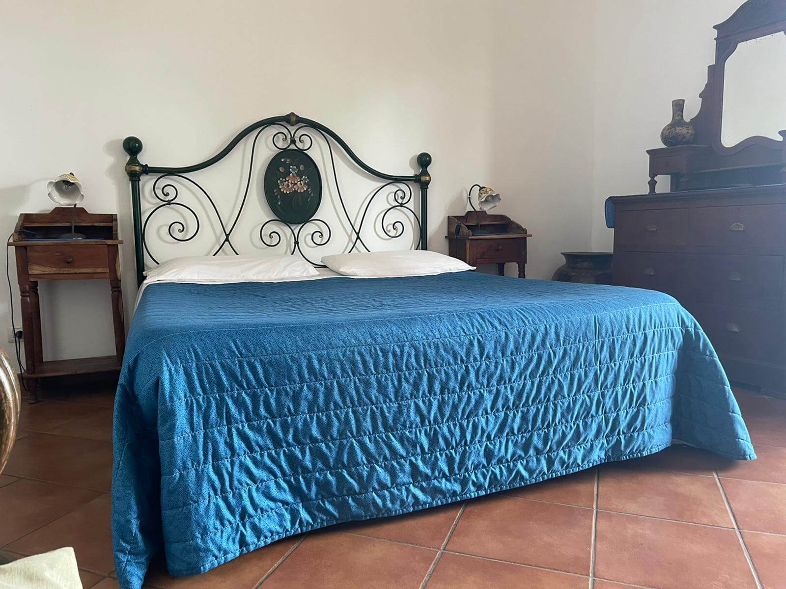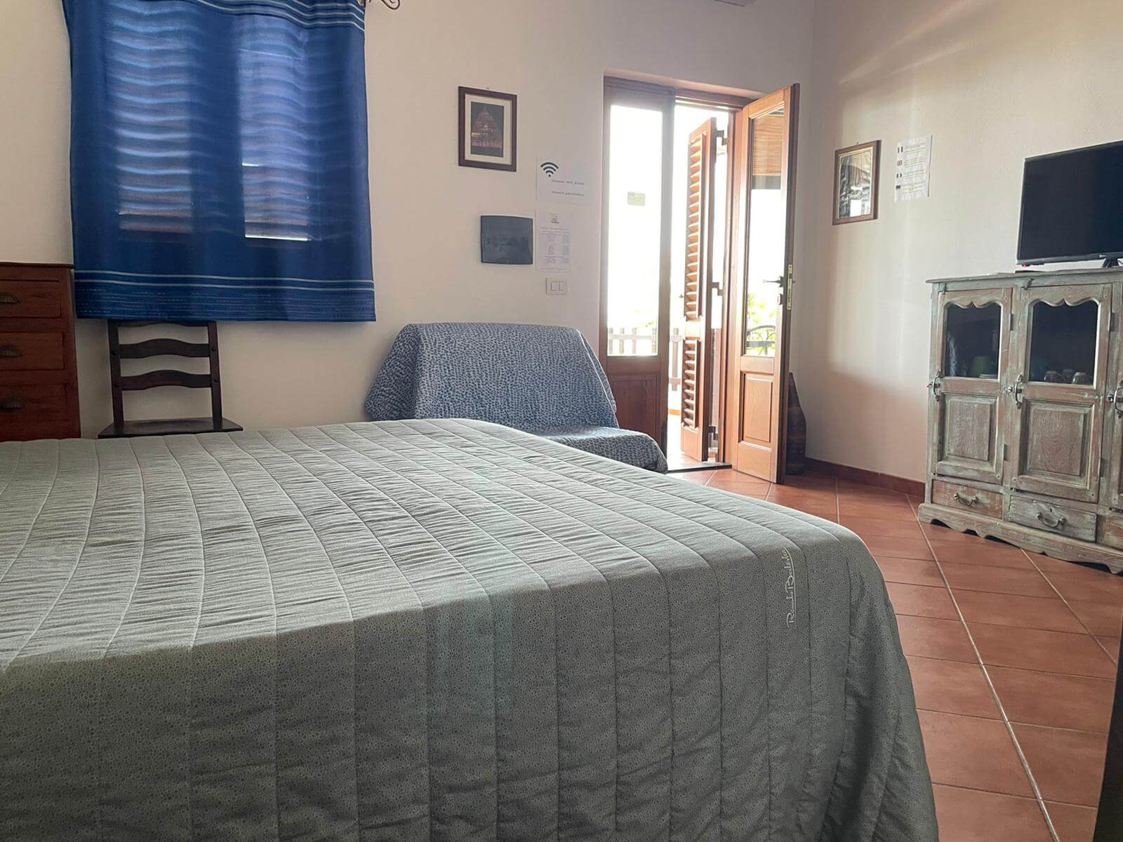 Gli arredi hanno tutti un sapore mediterraneo, anche grazie ai pavimenti in cotto e ai letti in ferro battuto, che tanto fanno pensare alla Stromboli di una volta, quando ancora non c'era la corrente elettrica.