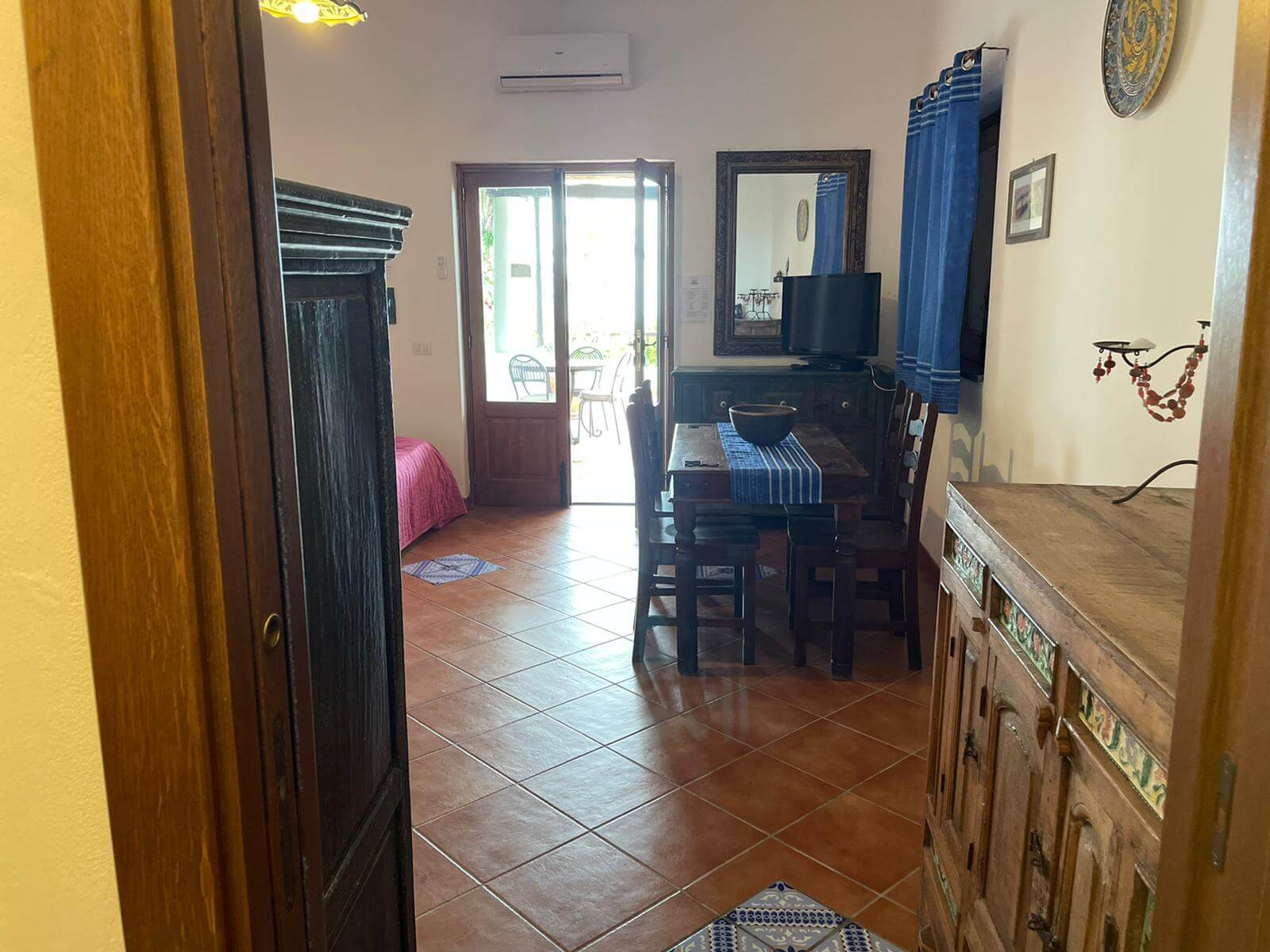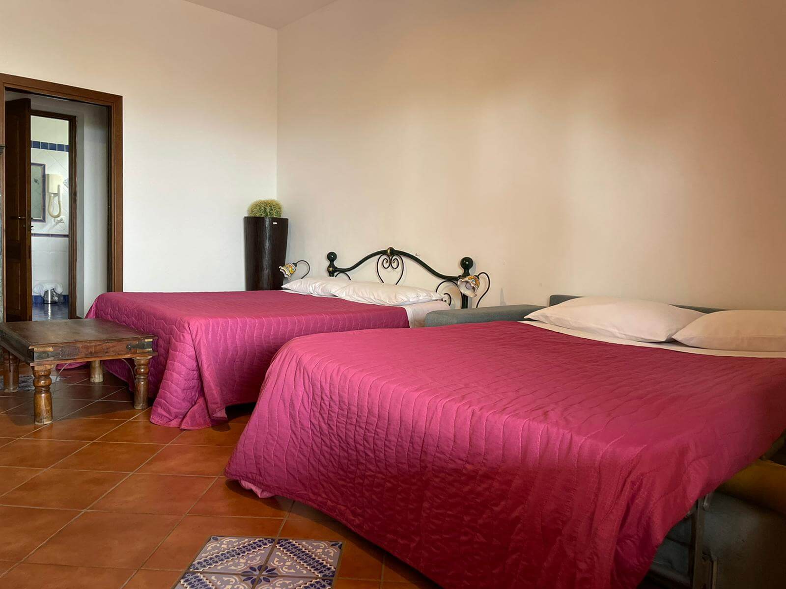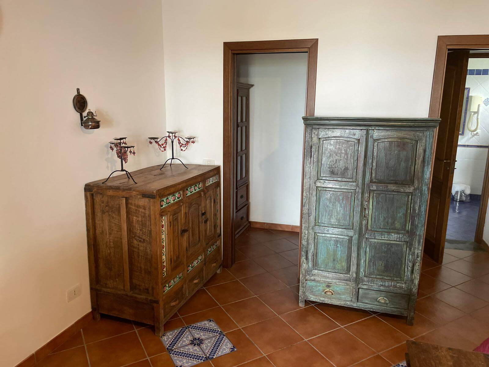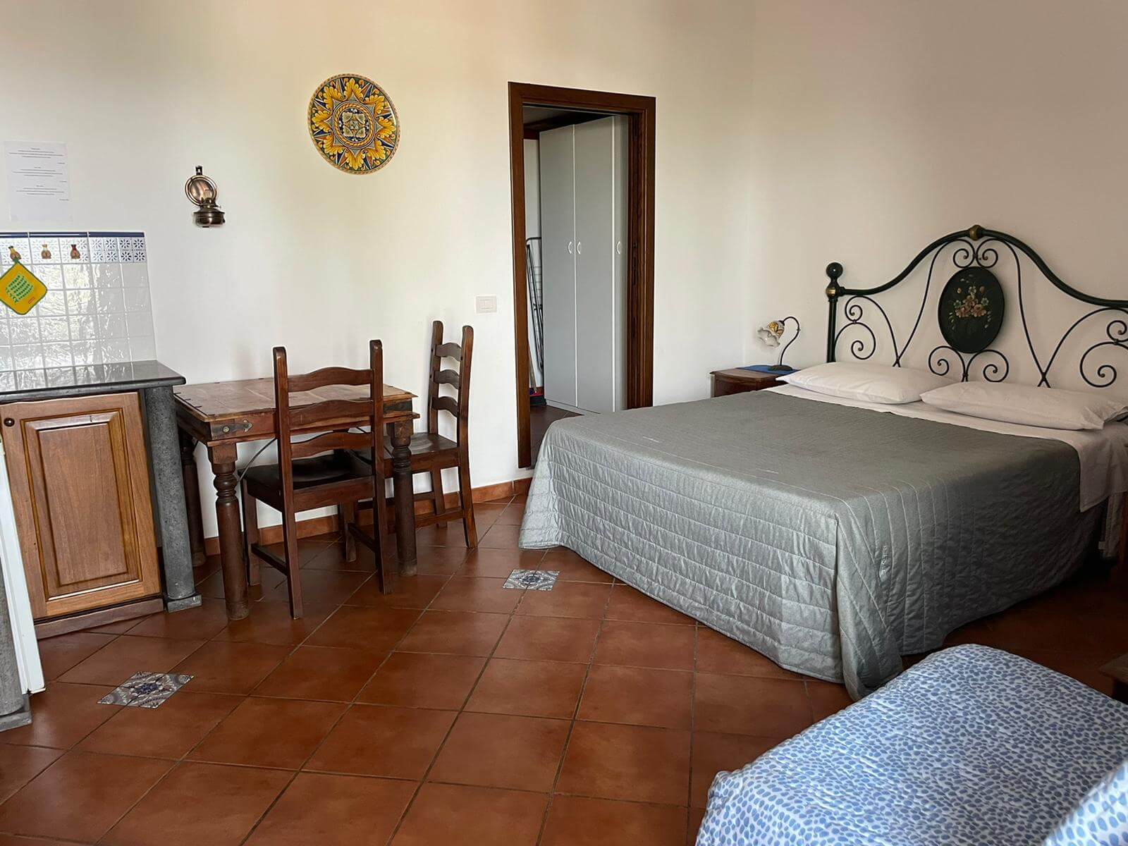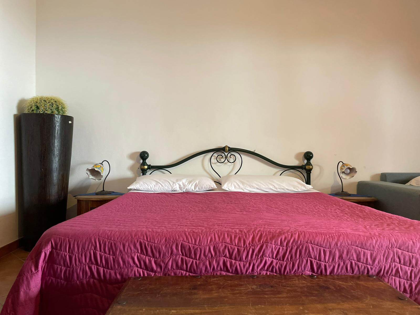 Gli arredi hanno tutti un sapore mediterraneo, anche grazie ai pavimenti in cotto e ai letti in ferro battuto, che tanto fanno pensare alla Stromboli di una volta, quando ancora non c'era la corrente elettrica.