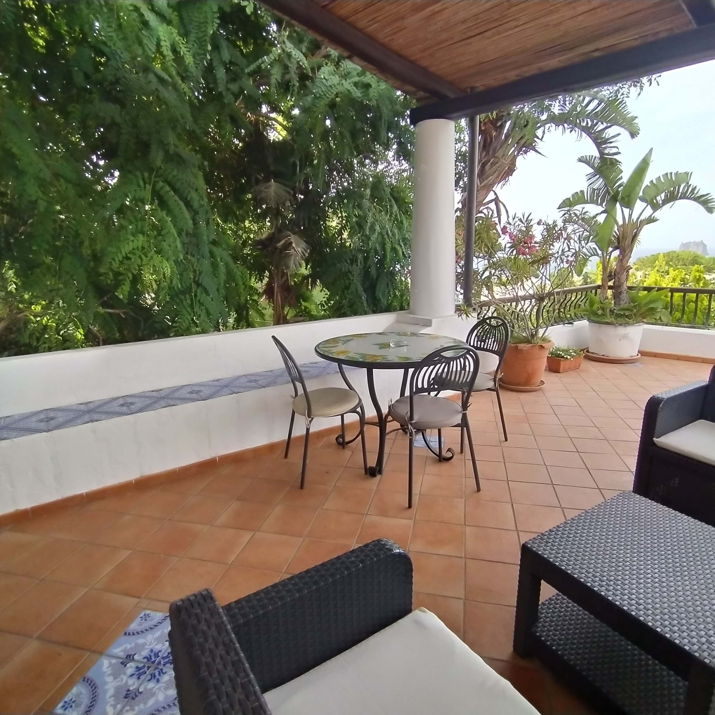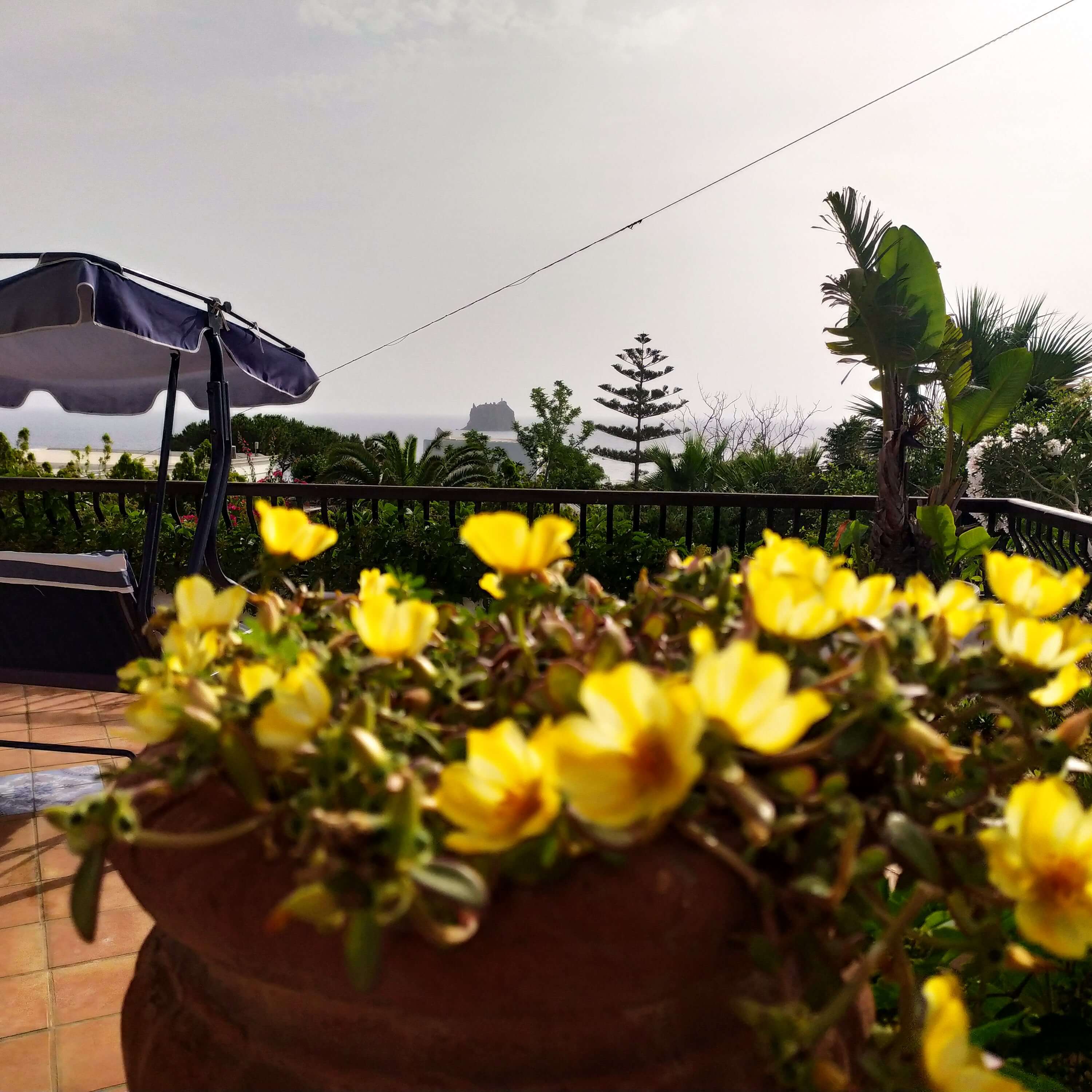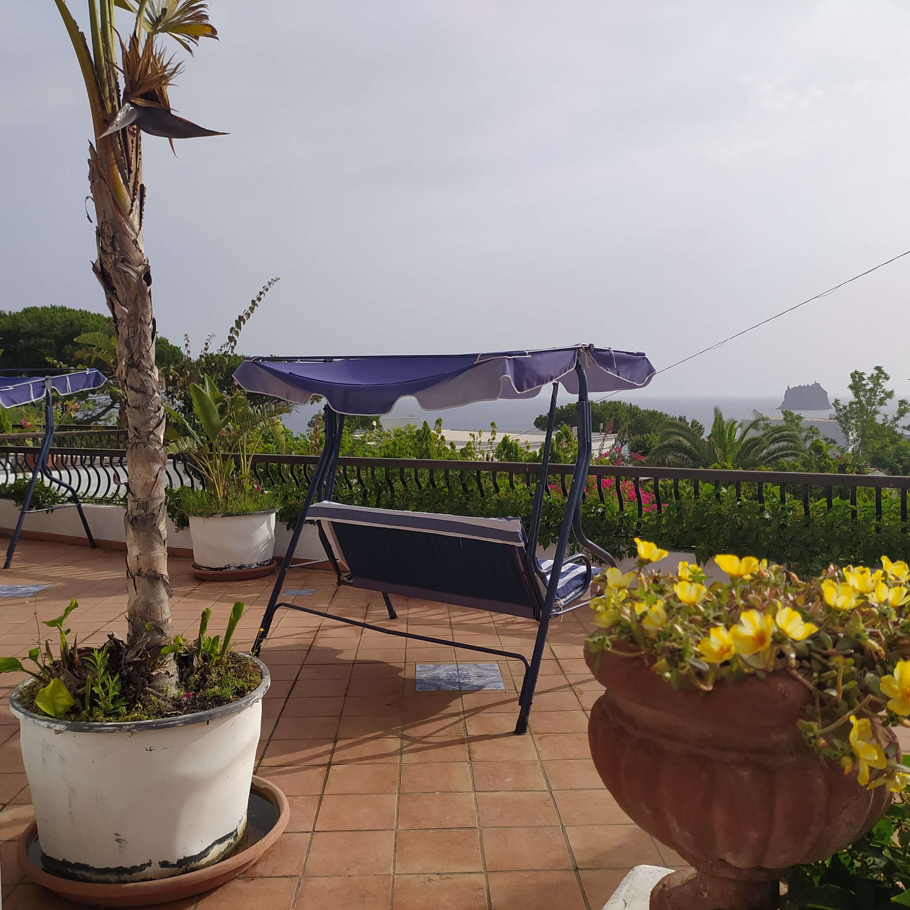 Monolocali Stromboli Vista Mare con terrazzini privati e terrazza comune attrezzata: alzati la mattina e saluta subito lo Strombolicchio, mentre ti stiracchi felice in preparazione di un'altra meravigliosa giornata di vacanze a Stromboli!