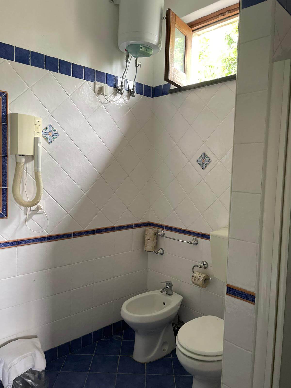 Ogni monolocale ha il suo bagno privato dotato di bidet (lo specifichiamo sempre!), una bella doccia e il phon asciugacapelli.