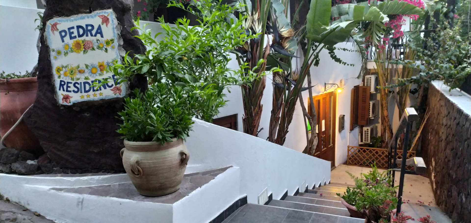 Residence Stromboli Pedra è una struttura, nello stile tipico delle Isole Eolie o Lipari, che offre 12 appartamenti monolocali, suddivisi su 3 diversi livelli con terrazze ampie e attrezzate, due delle quali godono di vista mare e Strombolicchio, e una con ampia terrazza che affaccia sul giardino